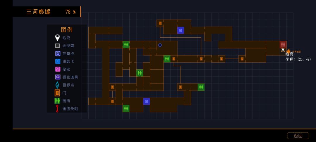 三河废墟79%应该是最高进度了,其他走不了的地方大部分是黄黑砖块挡路,还有一个小通道里的砖块阻挡回去探索的可能。(404地堡可解锁,但是否为80我不知道,因为LZ菜啊)