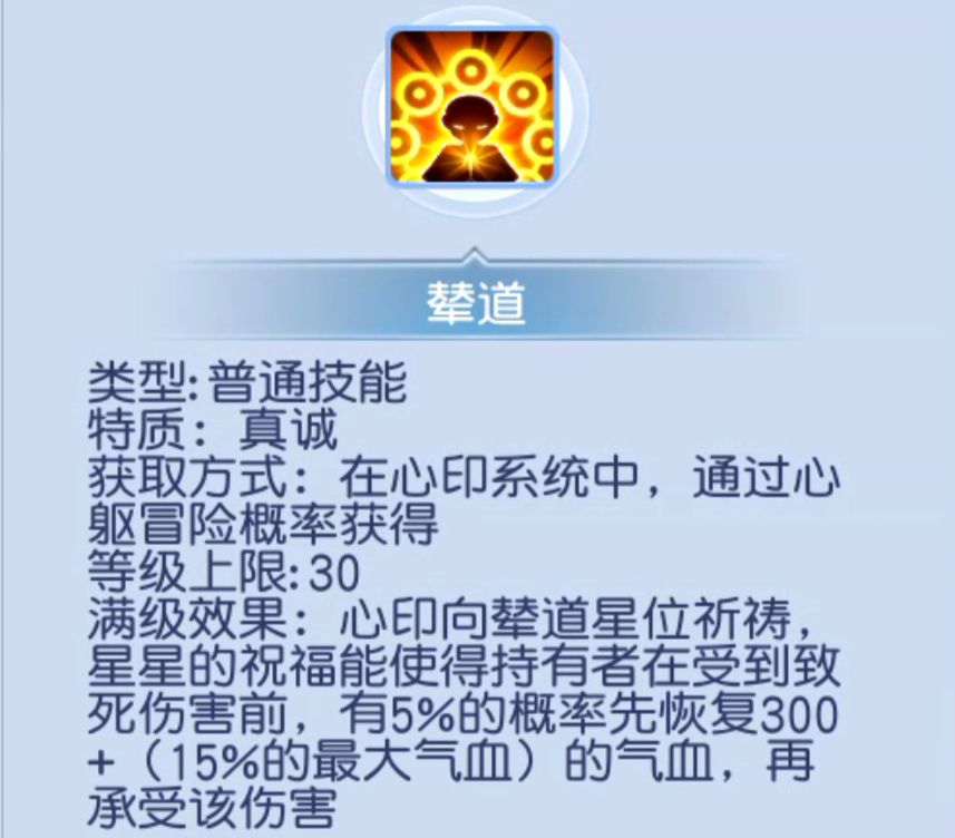 辇道和海石相辅相成,触发后保证生存的概率还是比较高的,我们在聊治疗职业的时候就简单说过,下面再给大家科普一下:本身人物单位还剩1000气血,此次我们马上受到的攻击数据为1500,所以我们就满足了这个技能触发的条件叫做受到致死伤害前!我们如果能够触发这个技能,就会恢复300+ 15%的最大气血,我们按照98级20,000血来算,按照数据来说,可以恢复3300的气血,本身就剩1000气血,再恢复3300我们个人的气血来到了4300,那么受到的攻击为1500,是不是成功生存!