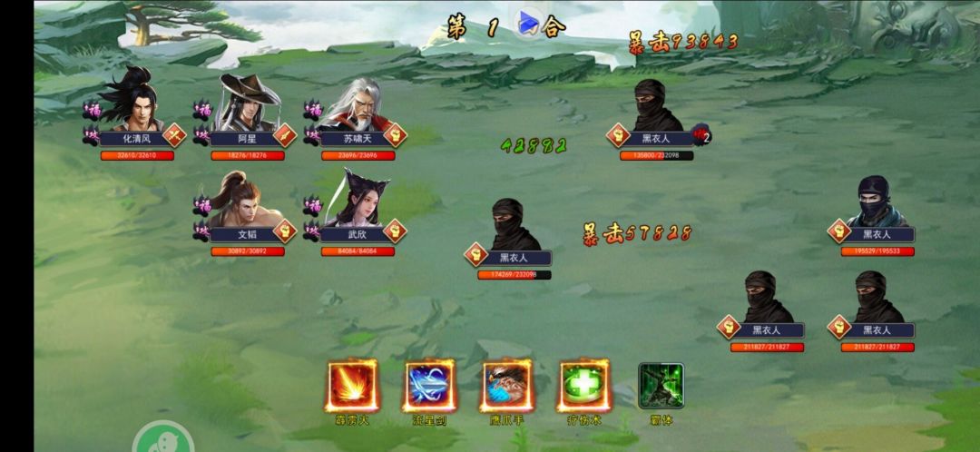 这里要注意前排两把刀韧性有点高,暴击看脸,打完前排后用白眉技能晕后面的剑,那两个太岳伤害好高,晕住后,后排争取一刀带走。