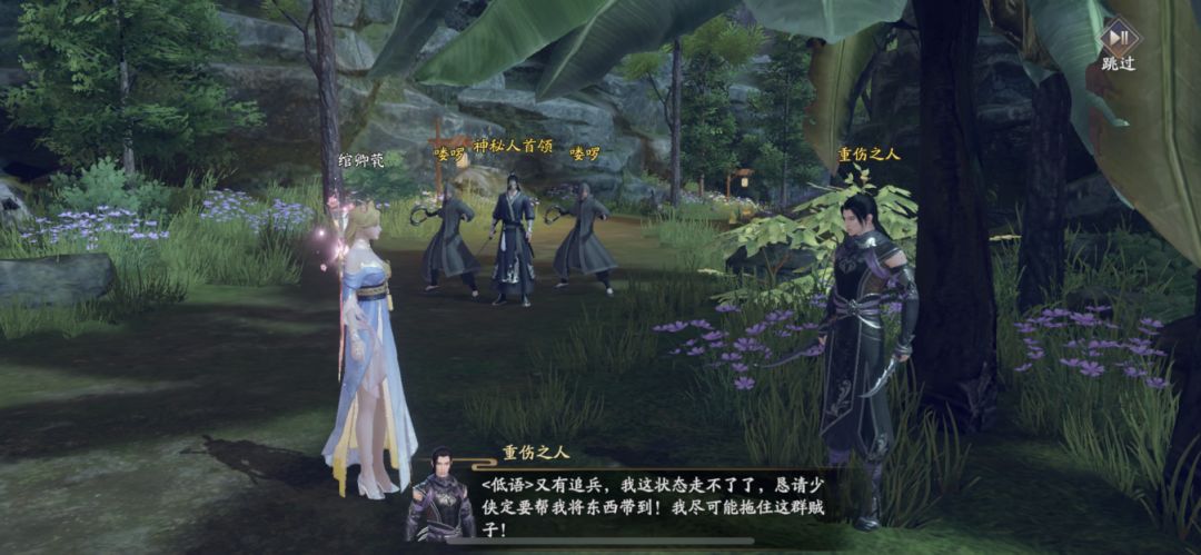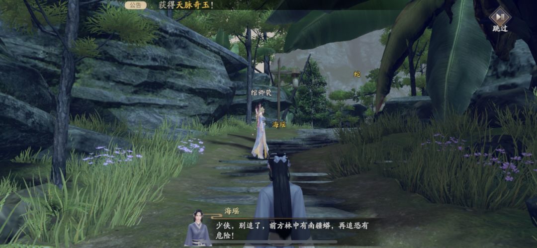 (4)随后带着意外拾取的玉料,找到了蛮王后嗣帕哈勒,并将玉物归原主。但隐约似乎背后另有真相,便决定悄悄跟随,直至密林瀑布处。