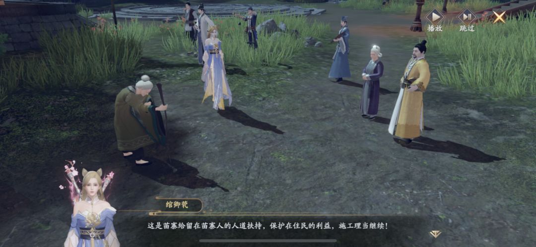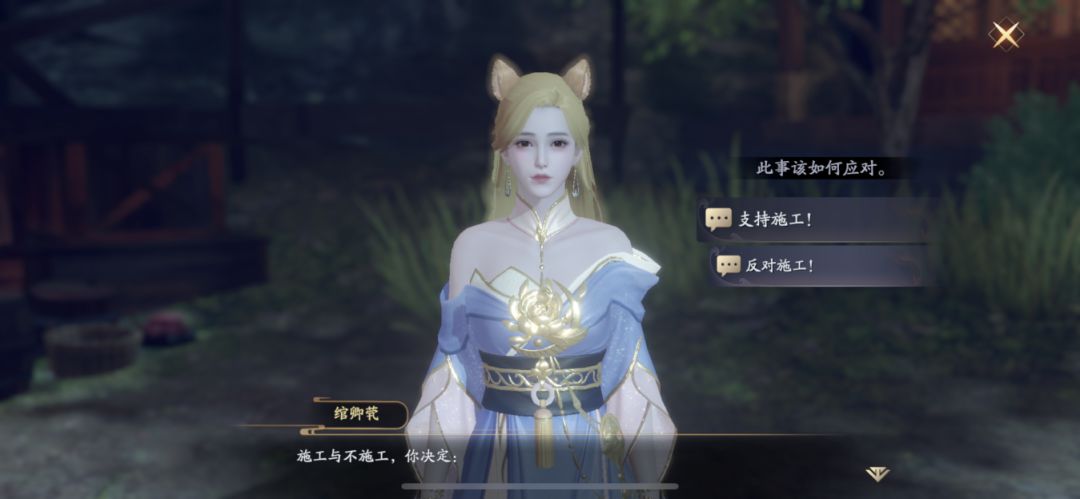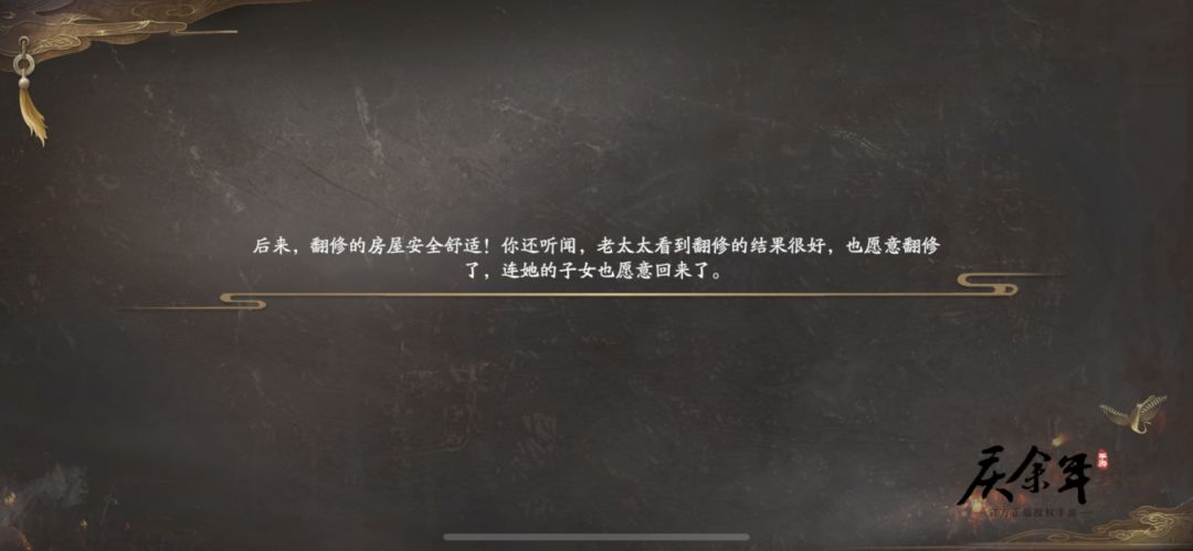 (4)在得知真相后选择【支持施工】,向寨民们动之以情晓之以理,最终圆满完成了寨子的翻修施工。