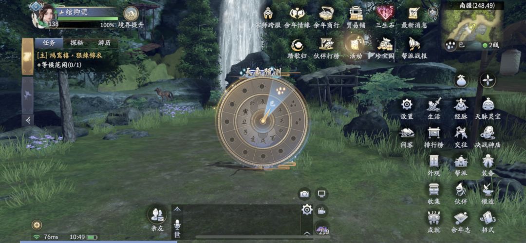 【※提示:天象预测表盘:每一格为现实世界十分钟,转一圈为现实世界二小时,游戏子时刷新天气预测表盘。(现实世界0点、2点、4点、6点、8点、10点、12点、14点、16点、18点、20点、22点)大家可以定好闹表,等待刷新,查看是否出现任务所需天气!】