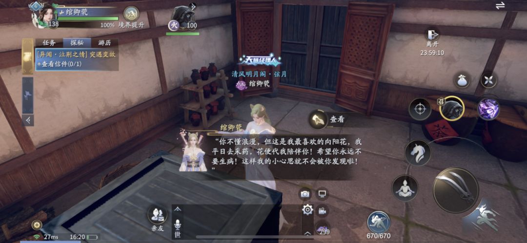 (3)在去往扶衣楼的路上,又遇到了另一名女弟子。在对暗号的过程中,发现对方是奸细,并将其击败。