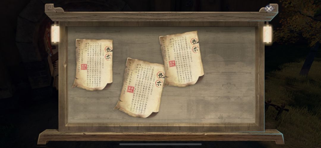 (3)思索中突然灵光一闪想起了告示栏张贴的悬赏,按图索骥前往东头告示处,与官兵和村民打探得知,在南疆深处竟曾经有过惊世魔功……不免好奇遂前往一探究竟。