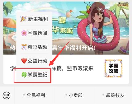 点击底部菜单栏【全民福利】-【学霸壁纸】