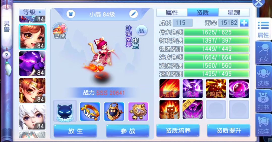 相比起鱼猫来说,猎煞的积攒难度就要稍微大一点,毕竟除了好感度以外,猎煞魂没有其他太多的获得方式!只能一点点喂出来!当做一个隐攻连击宠物真的很不错!