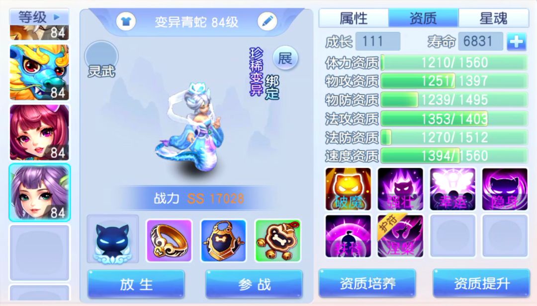现在已经一物一法了,那么,就让青蛇来做你的第一只专业配速!注意是配速,并非全速!千万不要小看这只一星宠物,在当前版本中,它已经算得上是版本之子的其中之一了。