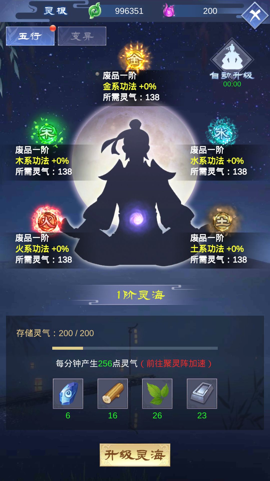 灵根升级需要消耗灵气,升级灵海可储存更多灵气。