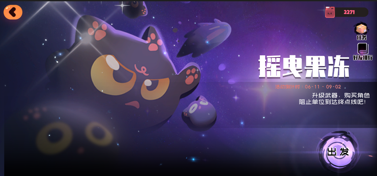 升级武器,购买角色,阻止单位到达终点线!完成相应的任务可以获得燃料和果冻币,好友之间也会有排行榜的哦~