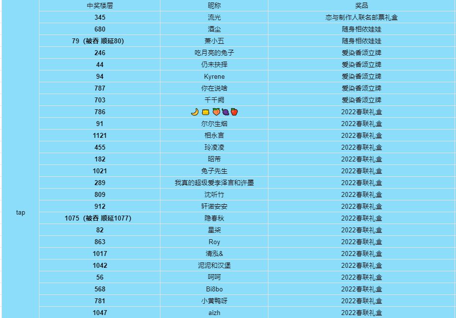 请以上获得奖励的制作人于2022.8.17之前添加叠纸福利小助手QQ:1917924997,提供详细地址。我们会在收到地址的7-10个工作日内寄出哦~添加小助手QQ时请备注:TapTap领奖+获奖昵称