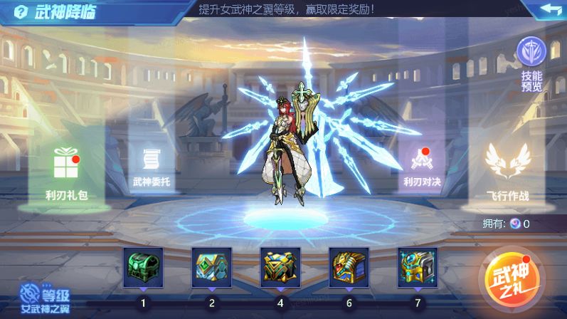 激活作战技能,通关更高层数,挑战成功即可获得武神之剑奖励。