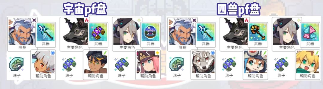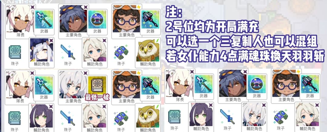 给出的配队有一些我自己没有尝试过的,都是当时其他服当时活动的盘子,具体实际用起来有些可能不是那么强。