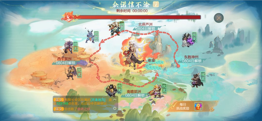 活动期间,大话地图将被分为四大战区,每个战区拥有两个全服BOSS,需要三界侠士组队前往战斗。每次BOSS被击败,唐王会给所有侠士发放全服奖励!当四大战区的全部BOSS怪物被击败时,信诺妖王将于长安城地区登场!