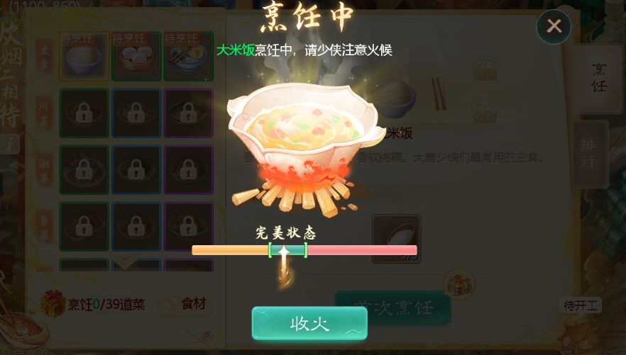 他特来邀请侠士一起重现众人共同欢聚时的烟火气息,获得丰厚报酬!活动开始后,各位侠士可在活动界面安排“帮手”在不同市集内自动收集食材和食谱。通过使用食谱和食材进行烹饪获取烟火仁心积分可换取奖励!
