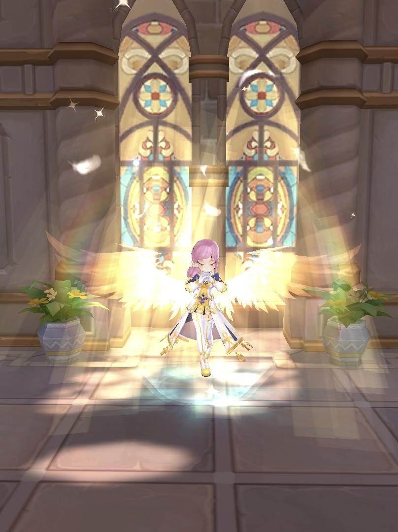 小牧师沐浴的神光下,闭上眼睛开始了虔诚的祈祷。教堂的神光洒在小牧师的身上,凝成一对光翼。小牧师听到了神的话语,她将留在教堂,终身侍奉神明大人。