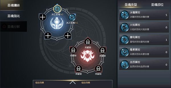 圣魂是级天地神气与一身的神物,圣魂分为2大类型,每个类型5个圣魄镶嵌位,一共能同时激活10种圣魄,收集同一类型3个/5个即可激活对应的圣魂套装效果。