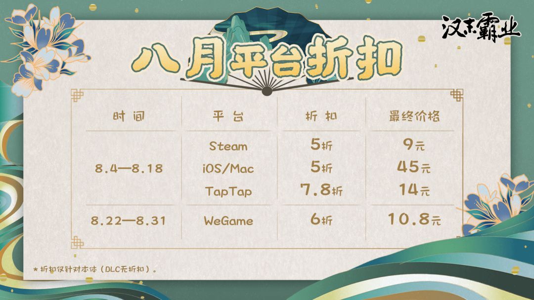 《汉末霸业》八月“暑期特惠节”!Steam和WeGame不可错过~