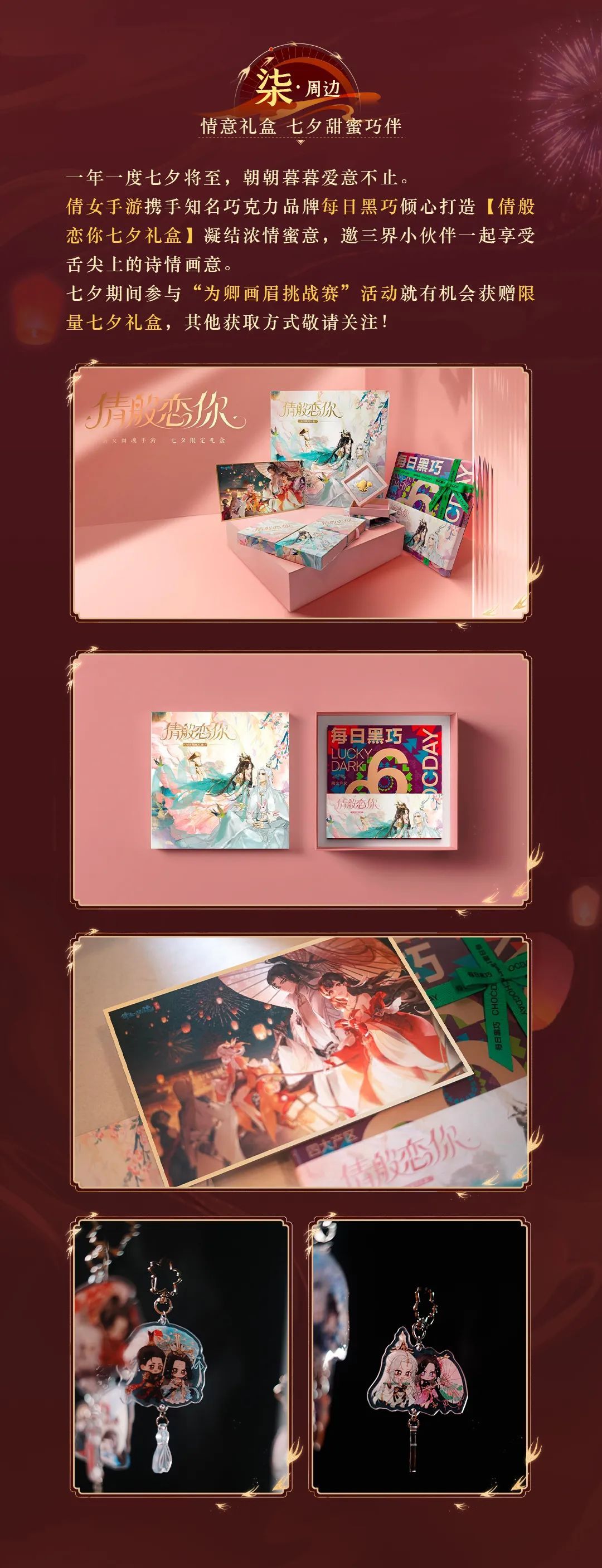 倩女手游携手知名巧克力品牌每日黑巧倾心打造【倩般恋你七夕礼盒】凝结浓情蜜意,邀三界小伙伴一起享受舌尖上的诗情画意。