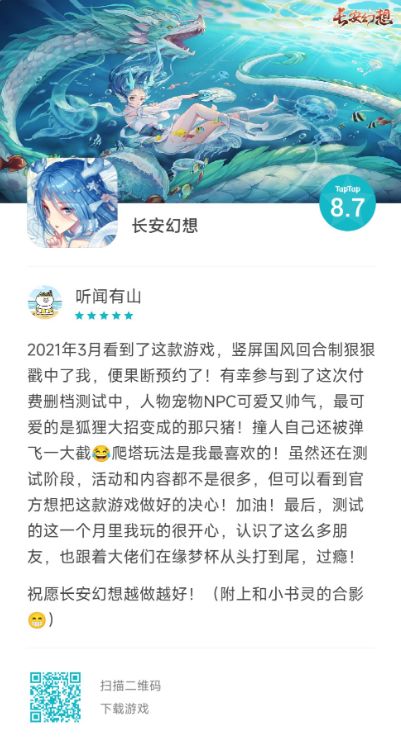 一直以来,无论是在Tap论坛还是官方社群,我们时常能见到一些愿意提供建议、分享体验的御灵师,在此特向御灵师们的厚爱与支持说声感谢!也欢迎同样热爱长安的御灵师前往TapTap《长安幻想》评价板块分享游戏心得体验,留住御灵冒险的时光。