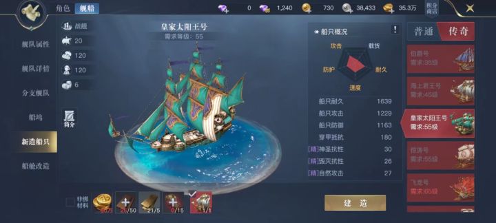 而55级ss贸易船,平民玩家是不建议建造的,只建议平民玩家建造普通的贸易船,就足以应付大多数的跑商了。