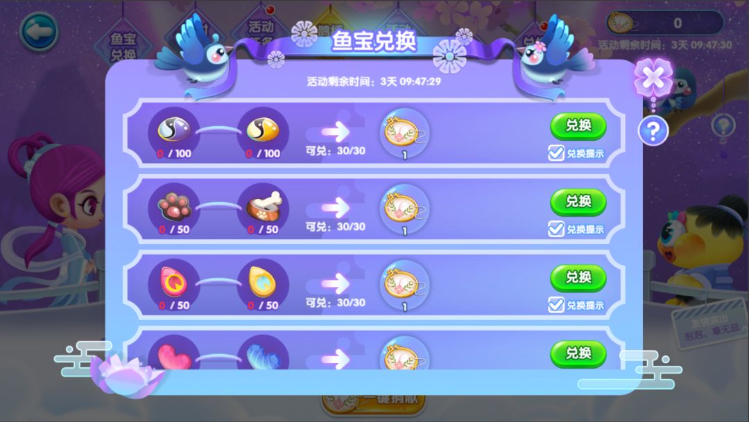 获取途径:可通过指定鱼宝兑换、每日任务领取、购买礼包获得;