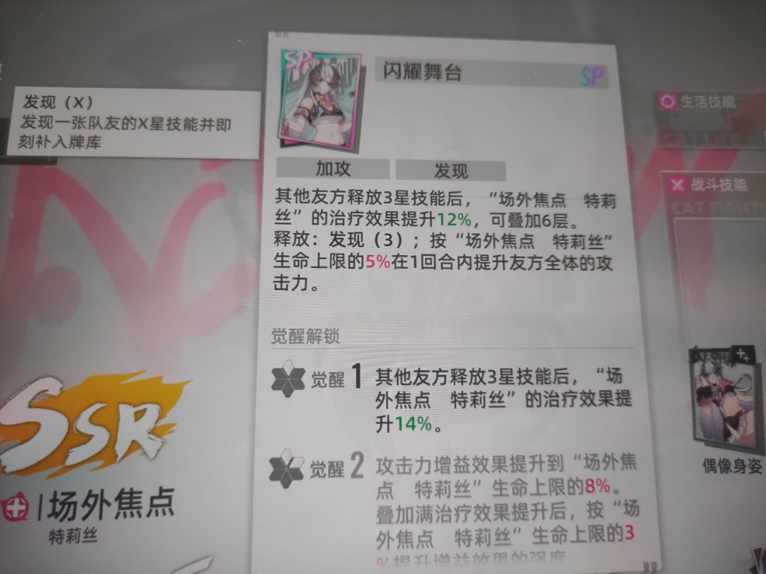 场外主要用来发现零度的a技能,治疗,以及大招发现零度的三星b,就相当于大招也给零度回了两点sp,并且因为这个队伍零度三星b出场次数多,也可以叠加场外的被动增加她回血量