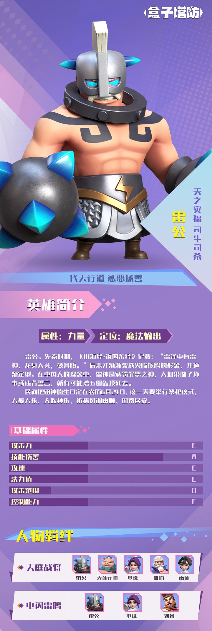 亲爱的小伙伴们: 今天带来紫色英雄「雷公」详情介绍: 技能展示: 对范围内敌人造成多段雷击魔法伤害,...