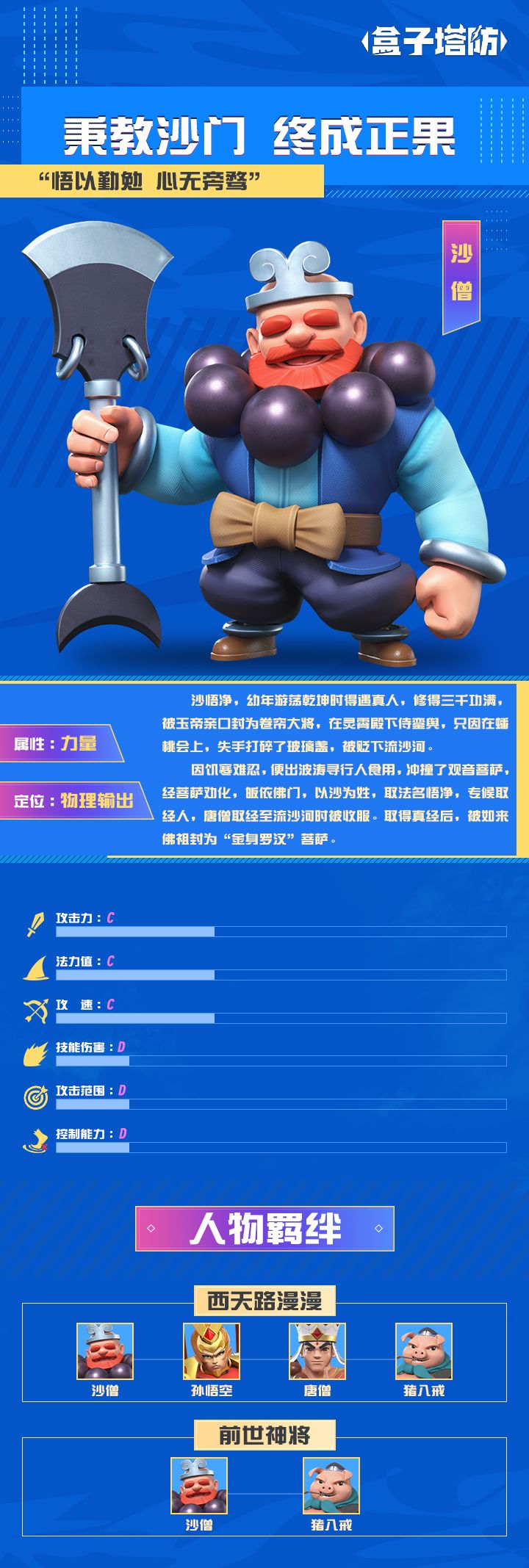 亲爱的小伙伴们: 今天带来蓝色英雄「沙僧」详情介绍: 技能展示: 释放一段海浪,对直线敌人造成物理伤...
