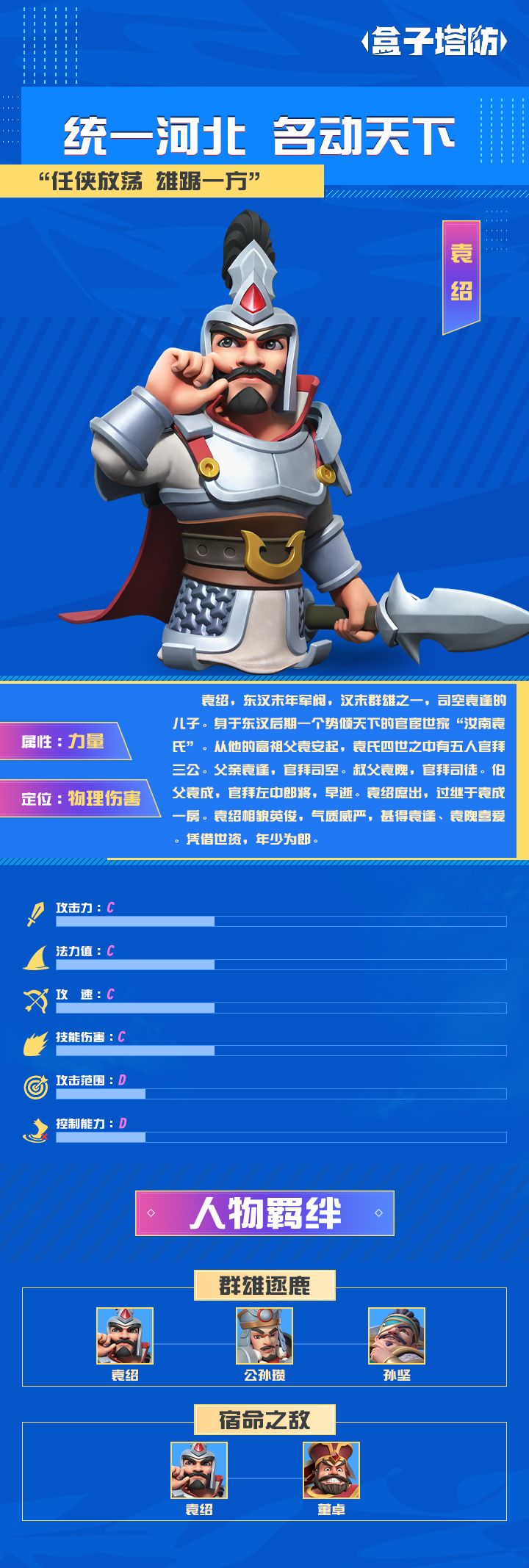 亲爱的小伙伴们: 今天带来蓝色英雄「袁绍」详情介绍: 技能展示: 快速对直线范围内敌人造成多段物理伤...