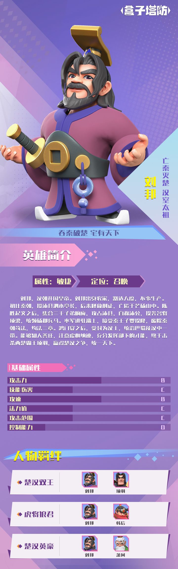 亲爱的小伙伴们: 今天带来紫色英雄「刘邦」详情介绍: 技能展示: 释放一团剑气对范围内的敌人造成大量...