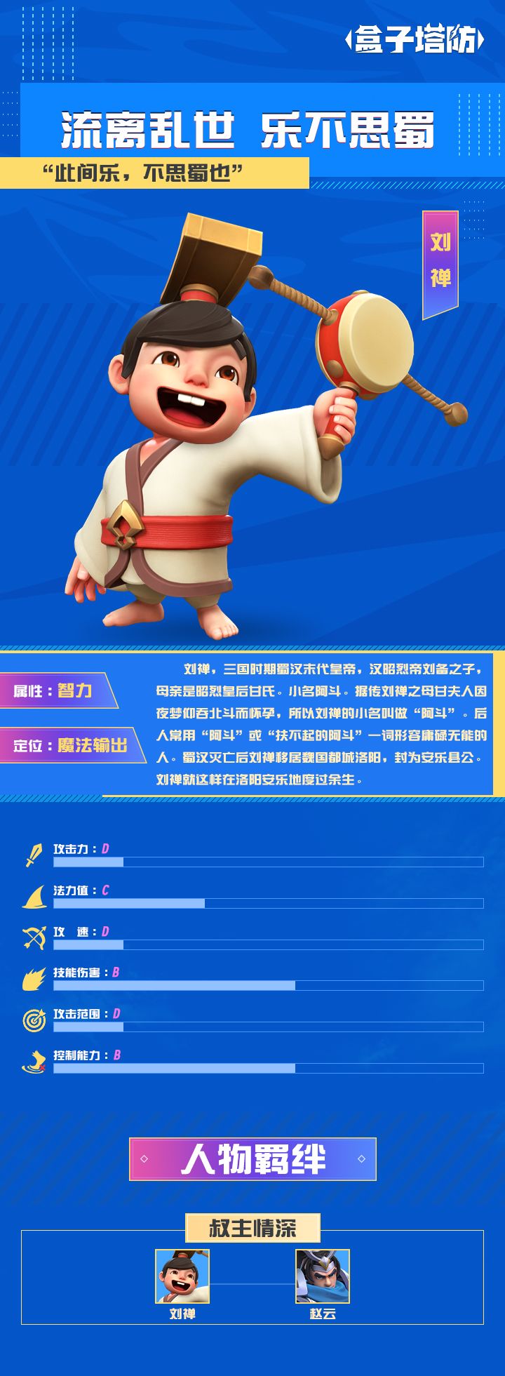 亲爱的小伙伴们: 今天带来蓝色英雄「刘禅」详情介绍: 技能展示: 主动技能可对范围敌人造成魔法伤害,...