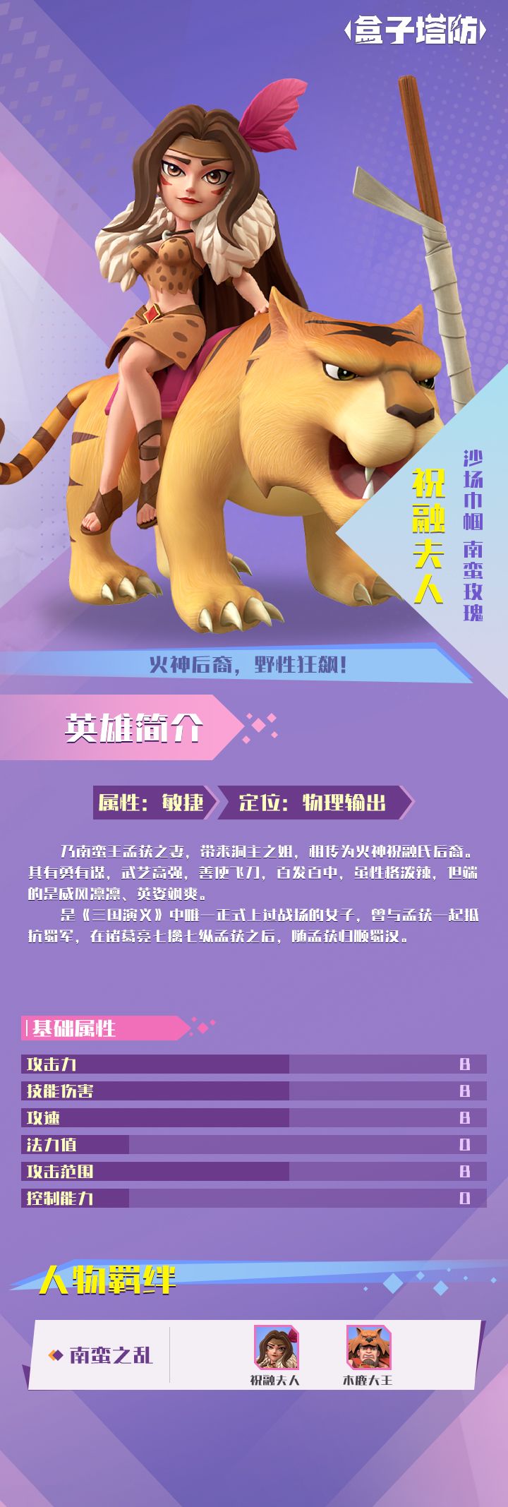 亲爱的小伙伴们: 今天带来英雄「祝融夫人」详情介绍: 技能展示: 攻击时对多个敌人造成额外伤害并附带...