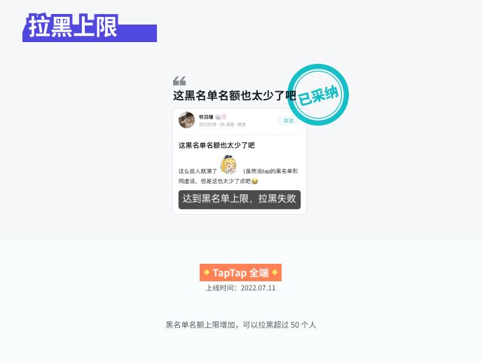 然后有关于 Tapper 关心的拉黑方面的体验,我们也在持续优化中哦~
