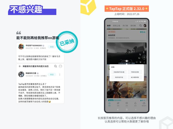 1. 首页推荐能够对视频、预约游戏、不喜欢的游戏长按不感兴趣
