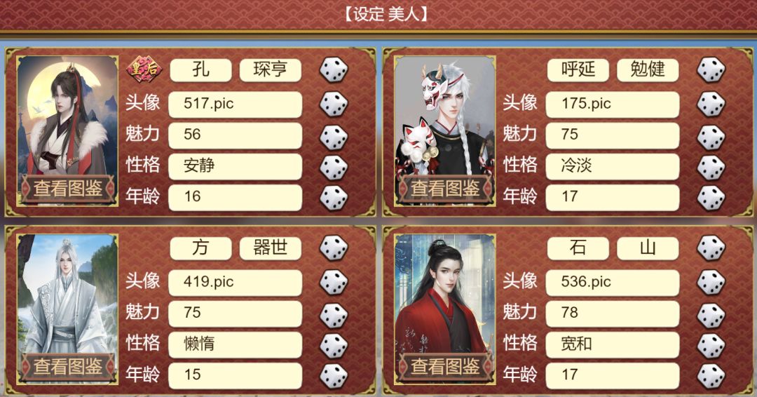 ◆新增:初始妃子可设置男性