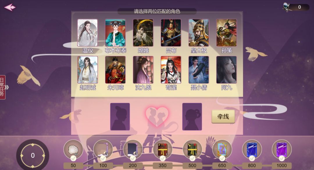 ◆若是配对成功,将喜结连理,新增可以喜结连理的角色: