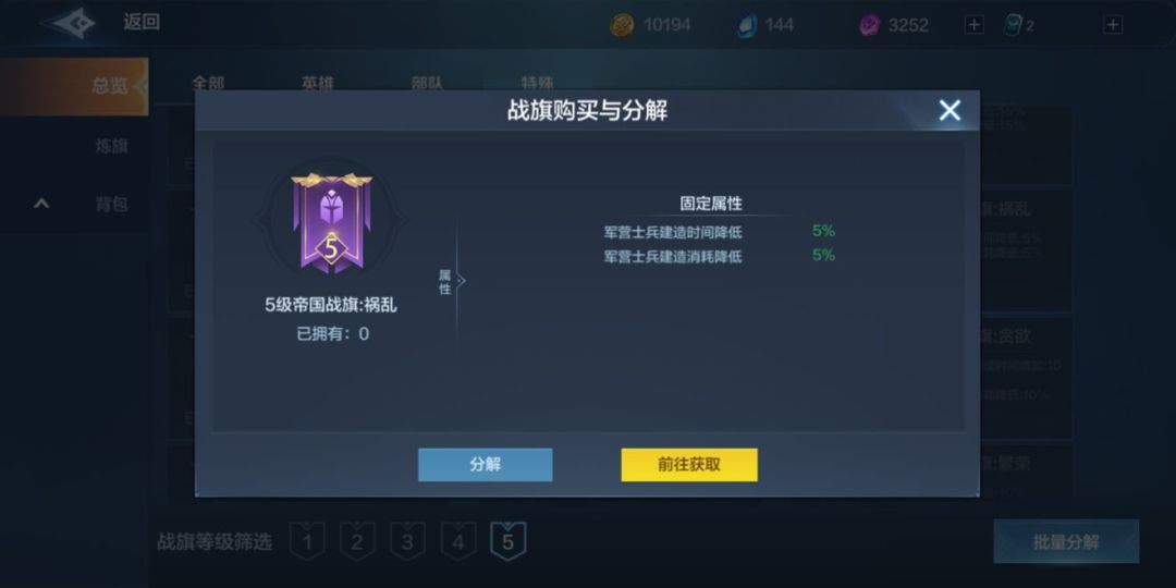 俗话说得好:兵马未动,粮草先行。一本军营士兵的建造时间和消耗的降低,选择这个战旗的原因是,让我们对战中可以更快的出兵防守或进攻,又能降低我们在前期经济的紧张。