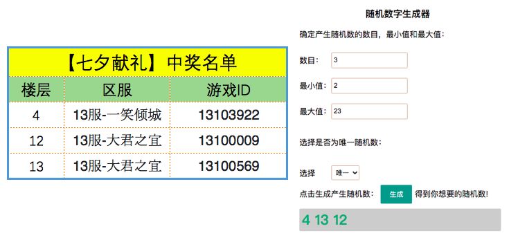【七夕献礼】开奖啦,恭喜以下楼层的主公获奖。