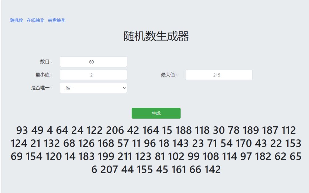 第一次生成:93 49 4 64 24 122 206 42 164 15 188 118 30 78 189 187 112 124 21 132 68 126 168 57 11 96 18 143 23 71 54 170 43 22 153 69 154 120 14 183 199 211 123 81 102 99 108 114 97 182 62 65 6 207 44 155 45 161 66 142