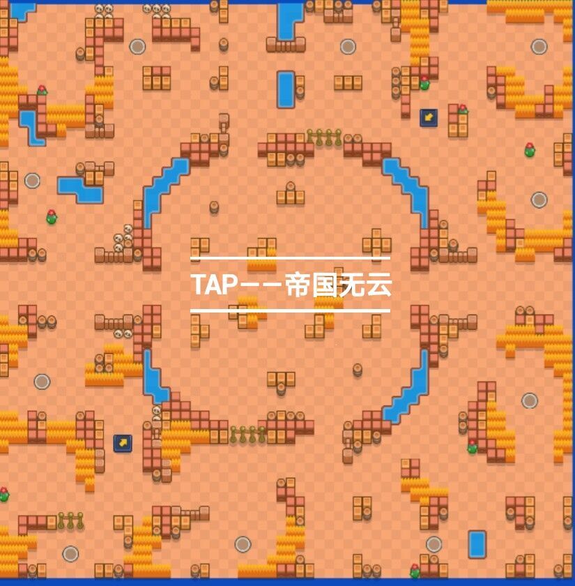 四条弯曲的河流配合墙体围出一个近圆形的大型中场。上下左右各留出一个窄小的入口。斜对角各有两个跳板可以直接进入中场。