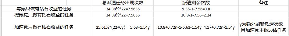 对于零氪党和微氪党来说,派遣次数确实有少量剩余,但是考虑到这是理论计算,大家都会留一些派遣次数保底,那么每过几天(具体几天看脸)零氪党和微氪党在做完当天的所有有钻石收益的派遣任务后,可以考虑多刷新1次。