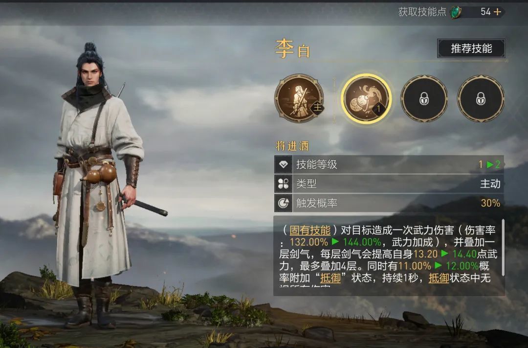 例1、要概率还是要技能?以李白作为案例,他的固有技能是240%伤害率,附带剑气和概率抵御效果。如果给他带上战争祝福,固有技能概率增加10%,等于多10%概率释放一次240%伤害率的固有技能,那我直接带一个20%概率释放的245%伤害率的天地无双斩,输出收益岂不是更高?