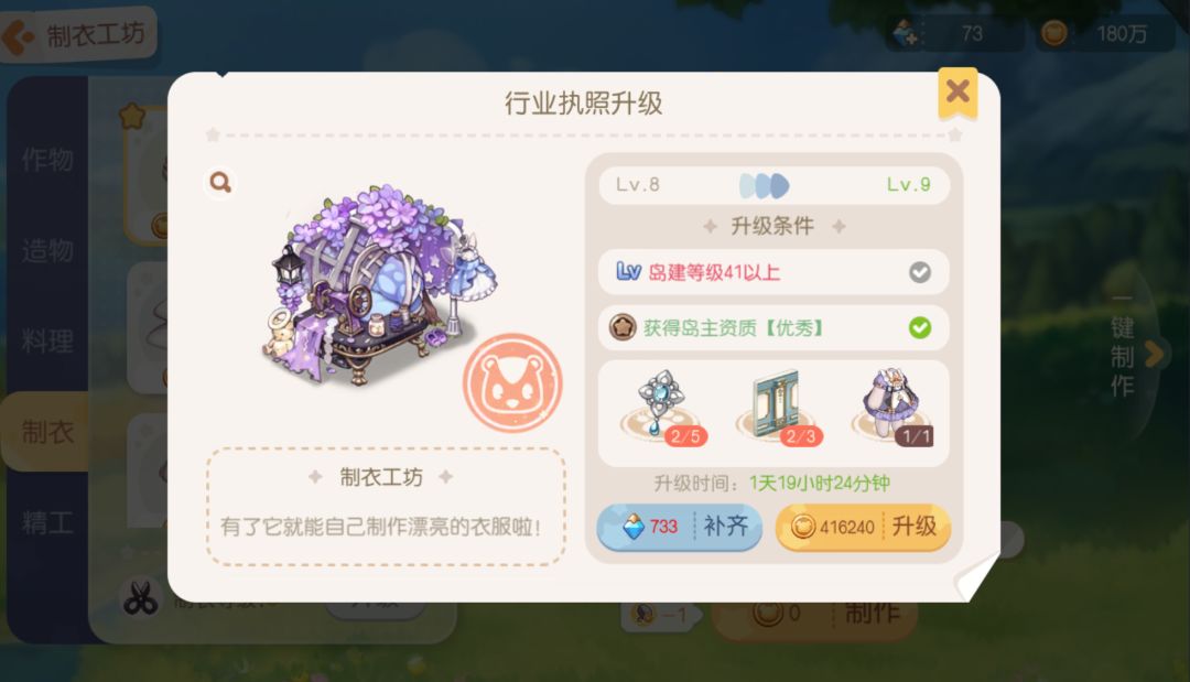 制衣工坊剩至九级需要海蓝宝石
