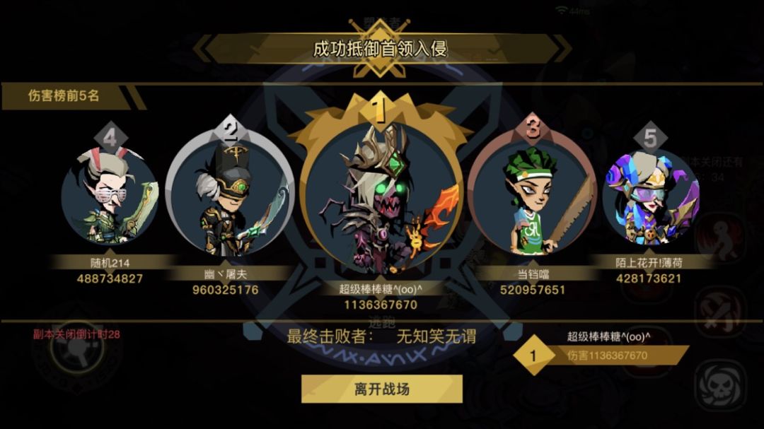 结果还不错,说明我的暴击起了至关重要的作用。另外我觉得我的操作手法也很不错。就这样,我是一个微氪玩家,数据+结果,55套目前来说还是我的世界boss套首选。