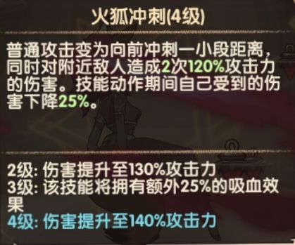 注:该英雄无普通攻击,由火狐冲刺代替普通攻击。