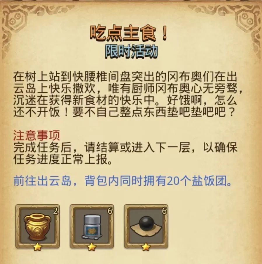 同时拥有20个盐饭团就可以获得金罐、护肝片和养生丸