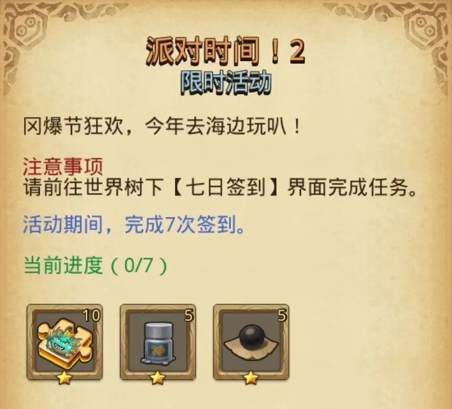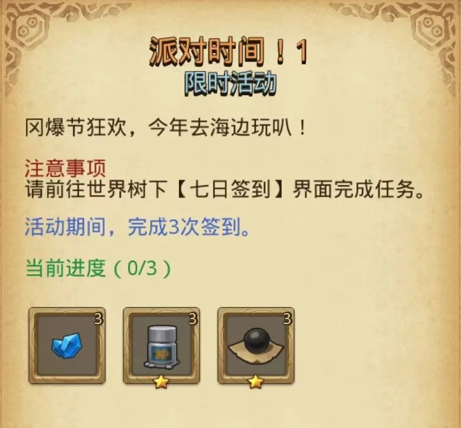 活动期间前往世界树下完成3次签到