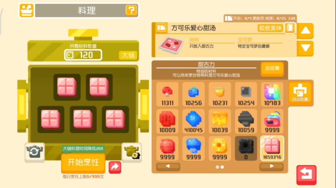 这些七夕主题的宝可梦,是不是看着高颜值外表,就觉得浪漫感十足,很想把它们带营地呢?这时候就这时候就需要七夕限定料理“方可乐爱心甜汤”大显身手了!