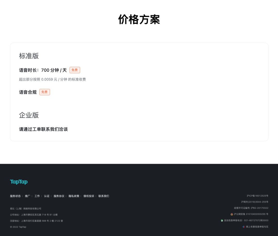 TapTap 语音服务收费方案