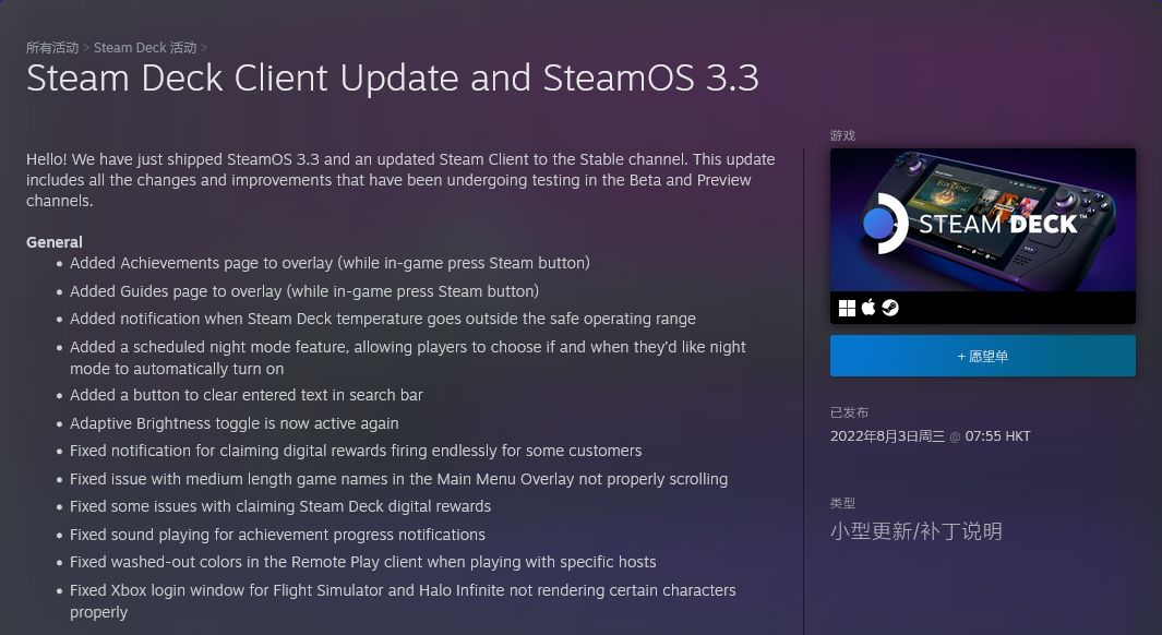 自推出以来,V社一直在稳步更新其 Steam Deck,而对设备的最新调整现在可以让用户知道它何时过热或过冷。 3.3 版更新警告用户过热和过冷会影响设备,这可能会影响 Steam 平台的性能。此更新还添加了基座模式改进、性能调整和 BUG 修复。